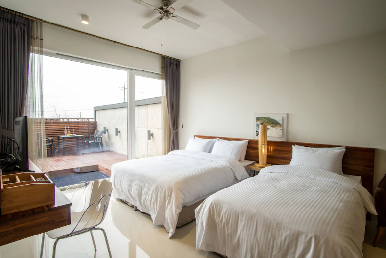 - 특징: 애월 바닷가 앞, 모던 미니멀 디자인, 조식 제공