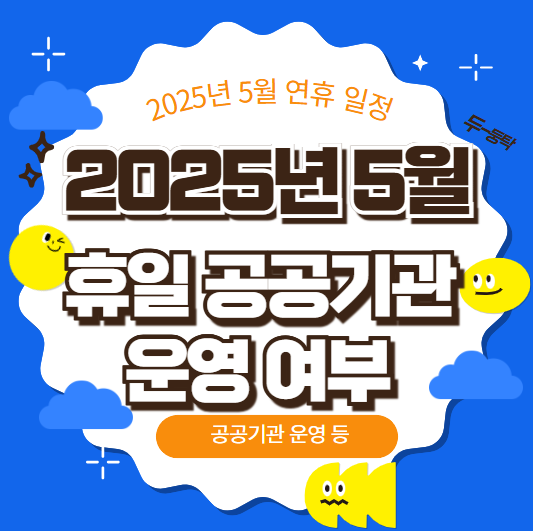 이번 포스팅에서는 5월 연휴 기간 공공기관, 은행, 병원, 택배 등의 운영 일정을 한눈에 정리해드립니다.