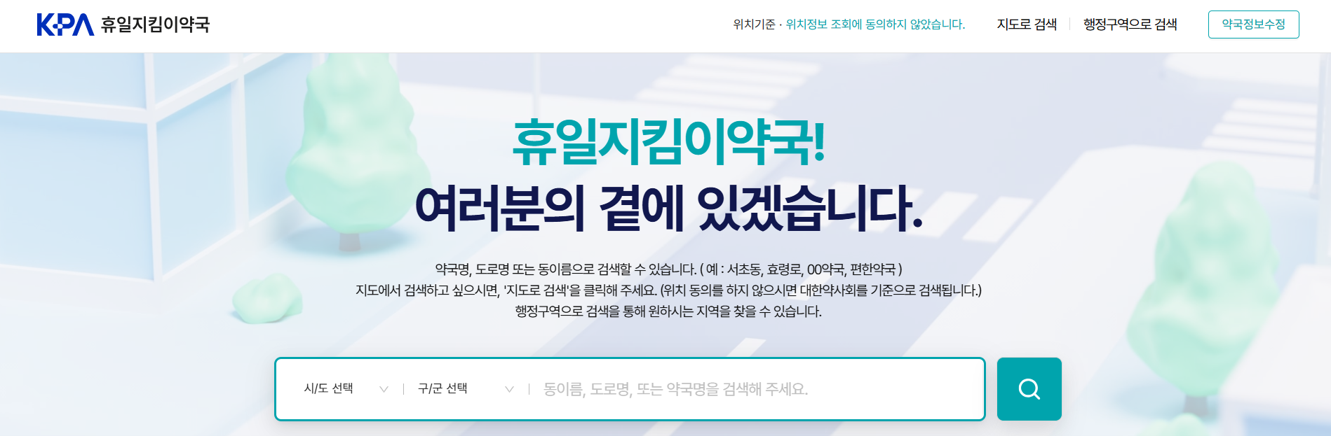 - 약국: 휴일지킴이 약국 운영
